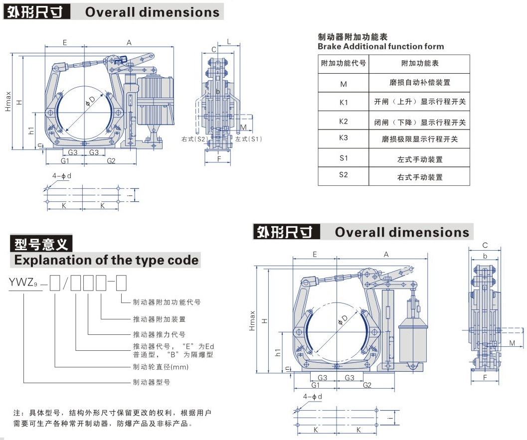 d、推動器的安裝尺寸H1是否小于表五所列之H1之***小尺寸,如超出要求,須進行調整,否則失去制動作用。