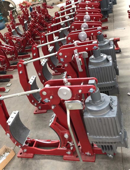 電力液壓鼓式制動器是采用電力液壓推動器為開閘驅動裝置的鼓式制動器,用于機構或機器減速或使其停止的裝置,有時也用于作調節或***機構或機器的運動速度。該制動器以制動輪做為制動偶件,制動時壓縮彈簧釋放彈性勢能,推動杠桿機構,使2個對稱布置的制動瓦塊在徑向抱緊制動輪產生制動力矩,目前起重機上起升和運行機構所用的工作制動器大多為電力液壓鼓式制動器。 電力液壓鼓式制動器結構緊湊,制動平穩,安全可靠,動做頻率高,制動器及制動偶受力均勻。電力液壓鼓式制動器按照制動臂形狀特征分為直臂結構、雙彎臂結構、單彎臂結構、彎臂結構;按彈簧的安裝形式分為橫簧和豎簧;按照制動過程分為單步制動和兩步制動;按照安裝方式可分為豎式安裝和臥式安裝。根據不同的結構形式和驅動裝置,電力液壓鼓式制動器有YWZ、YWZ3、YWZ4 、YWZ5、YWZ9等數10 個型號。 本文主要對起重機上常用的YWZ8、YWZ9 和YWZ13 進行能效研究,這三款制動器起重機上用量大,使用普遍,對這三款制動器進行能效分析,對其他制動器的能效研究具有借鑒意義。