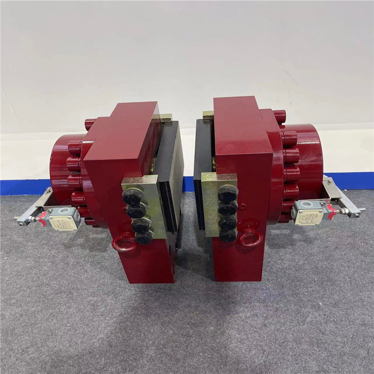 SKP型SKD型液壓盤式制動器是直接做用的,由液壓或空氣壓力啟動。所獲得的制動功率與所施加的壓力成正比。制動器由兩個對稱的半制動器組成,其制動盤厚度為12 mm。如果需要更厚的制動盤,可為制動器提供墊片。每個半制動器配有兩個圓柱形導向銷,將切向制動力從制動片傳遞到制動器。這意味著制動活塞不會受到任何徑向能量的影響,因此有助于延長制動器的使用壽命。每個半制動器配有兩個回縮彈簧,在制動器釋放時,回縮彈簧將制動片拉回。制動片磨損通過活塞增加行程自動補償。