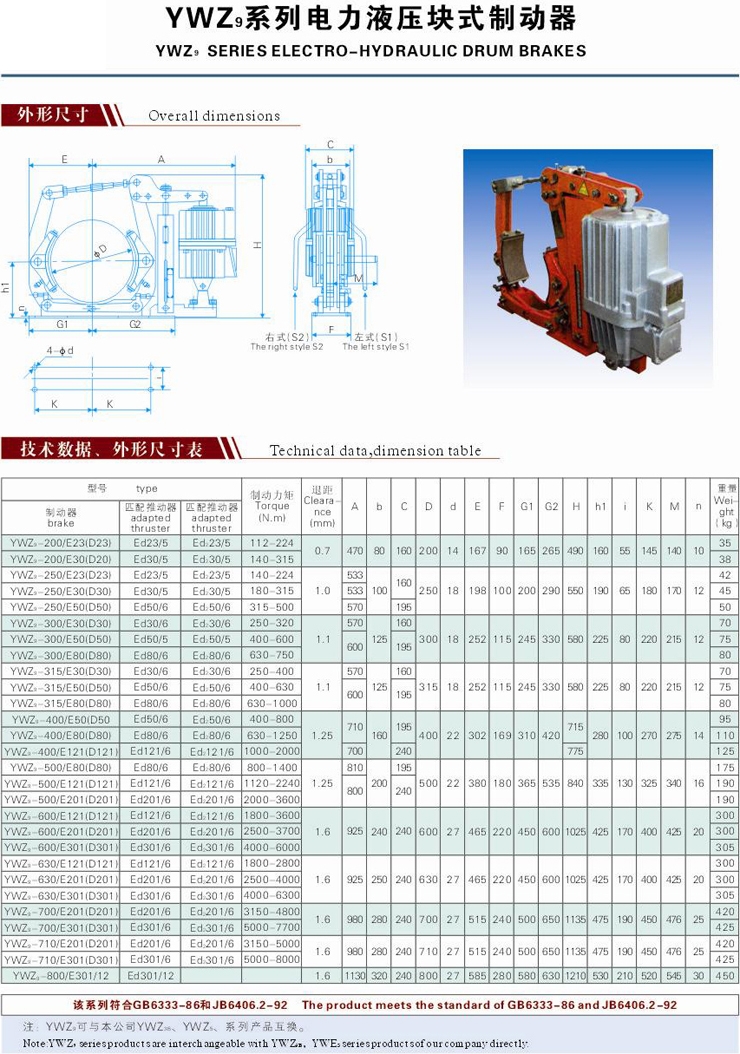 機械驅動裝置的減速或停車制動。性能安全可靠,制動平穩,動作頻率高。