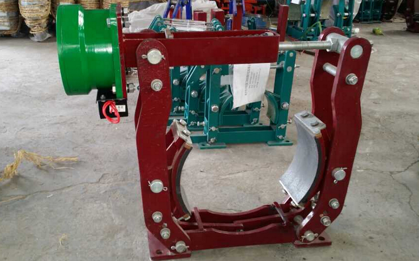 制動器型號YWZ300/90,電力液壓推動器為驅動元件的瓦塊式制動器,制動輪直徑300mm,90是推力代號。